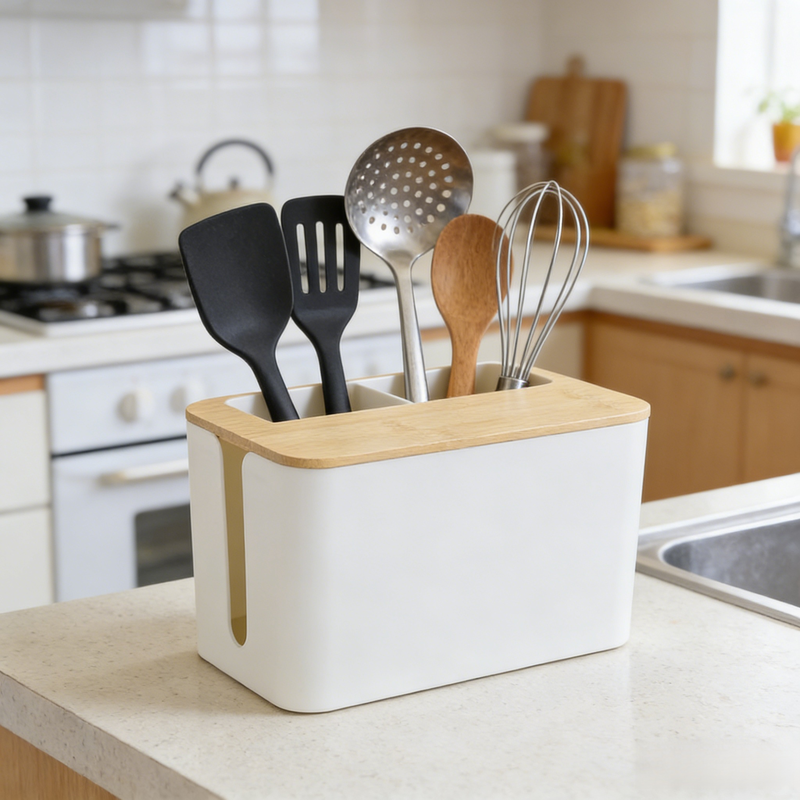 กล่องเก็บของบนโต๊ะแบบญี่ปุ่น ขนาดเล็ก โปร่งใส แบ่งช่องสำหรับเครื่องครัวและอุปกรณ์เครื่องเขียน