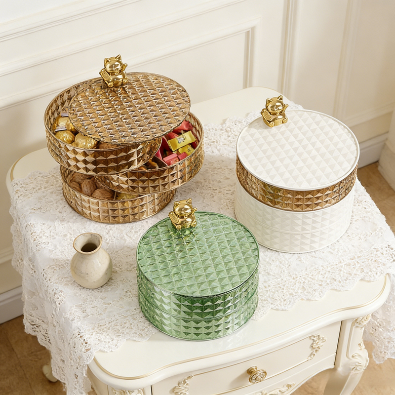 กล่องเก็บผลไม้และลูกกวาดทรงกลมแบบหรูสำหรับห้องนั่งเล่น ถาดผลไม้แห้งและเมลอน